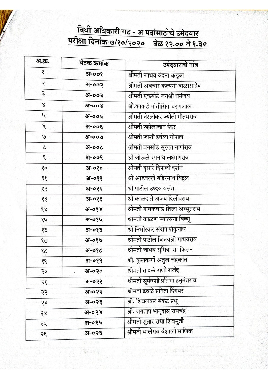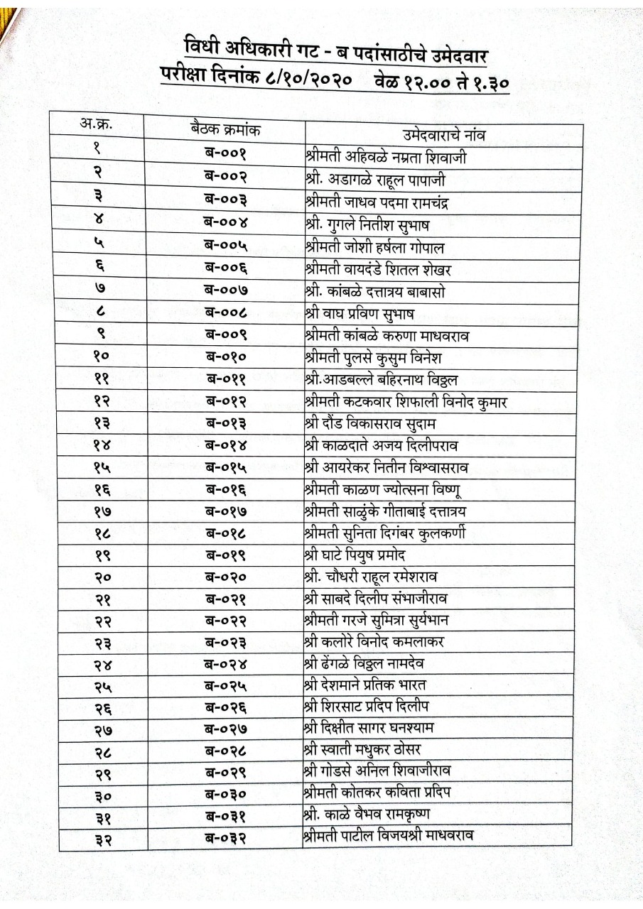 Vidhi Adhikari recrutment Exam Center Criminal Investigation Department, Maharashtra State HQ, Near Pune University, Pashan Road, PUNE– 411 008, Maharashtra State, India